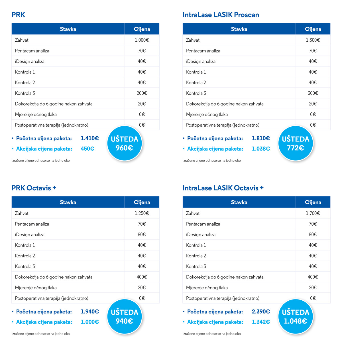 Sve navedene cijene odnose se na jedno oko.